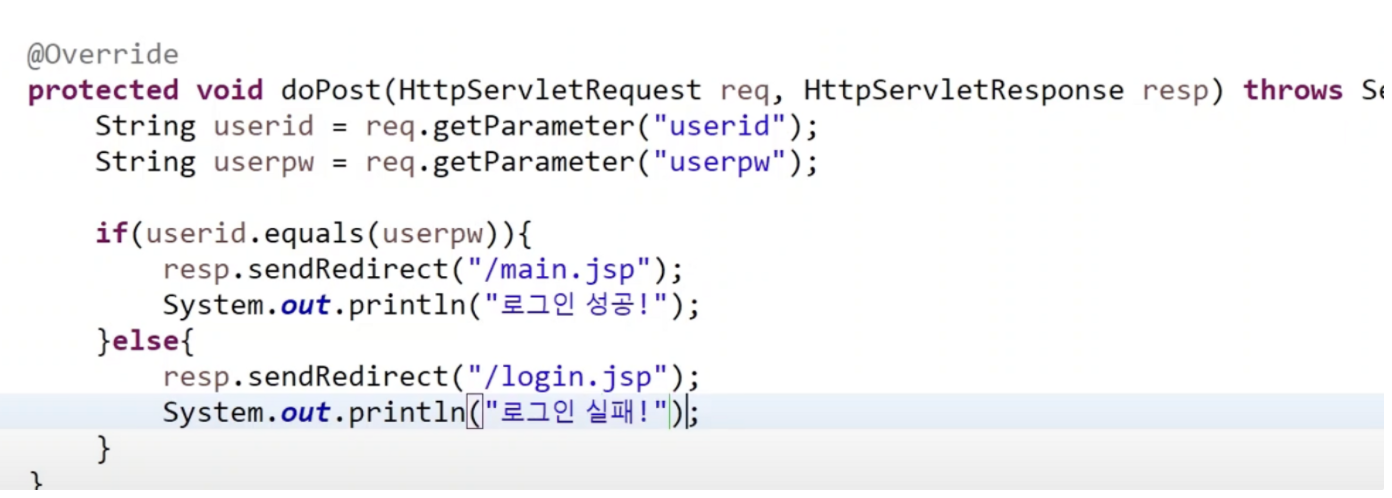 그럼 내가 만든 LoginServlet.java 코드가 동작하게 된다.(화면 부분은 작성하지 않았다.)