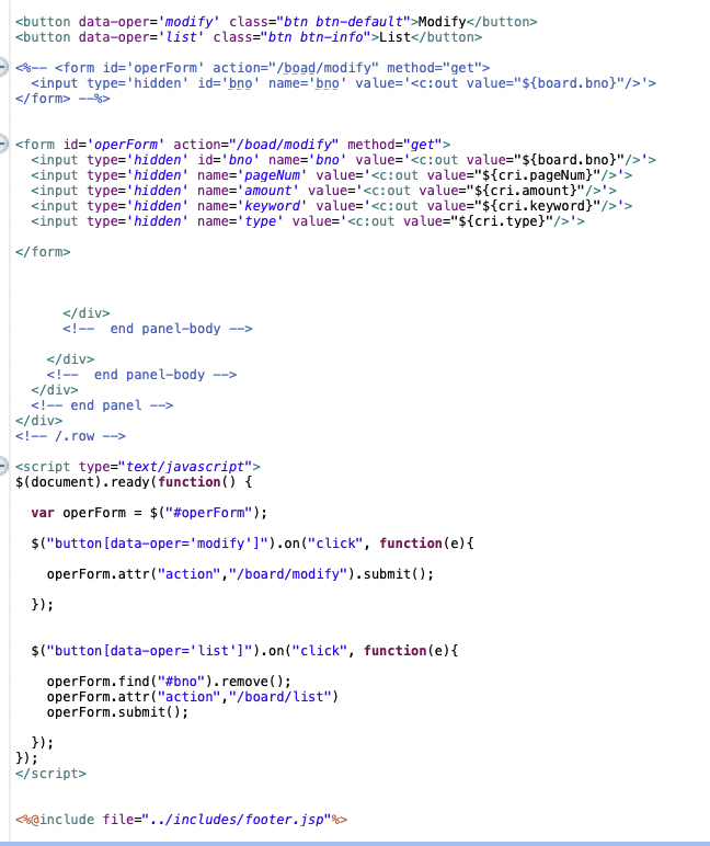 (/board/list 이동, /boadr/modify?bno=xx이동 버튼.)