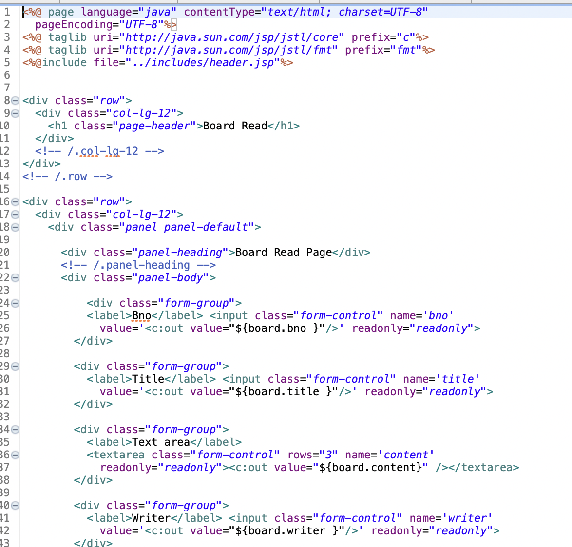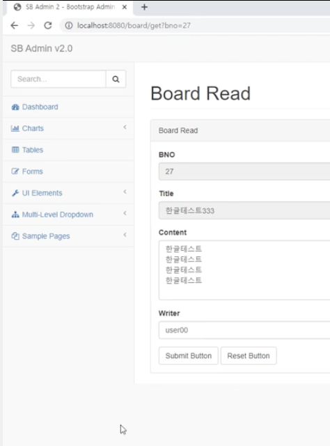 조회 페이지는 입력 페이지와 거의 유사하지만