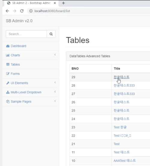 게시물 번호(bno)가 출력된다는 점과