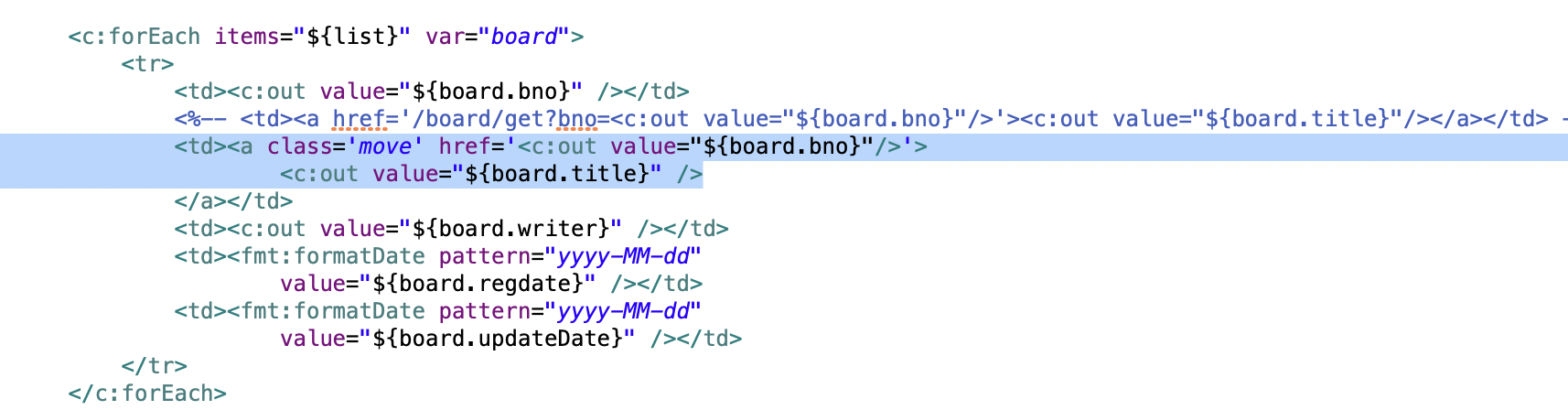 목록 페이지를 보면 게시물 제목에 <a> 태그를 적용하여