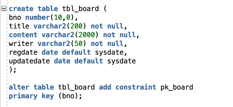 tbl_board 테이블 생성 SQL을 다시 살펴보도록 하자
