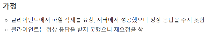 - 이미 이전 요청에서 삭제된 파일이지만 현재 파일은 삭제된 상태이므로 삭제를 성공했다고 응답한다.