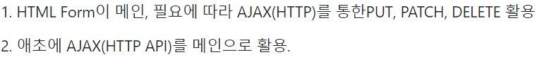 - 하지만순수한 HTML과 HTML Form은 GET, POST만 지원하기 때문에 제약이 있다.