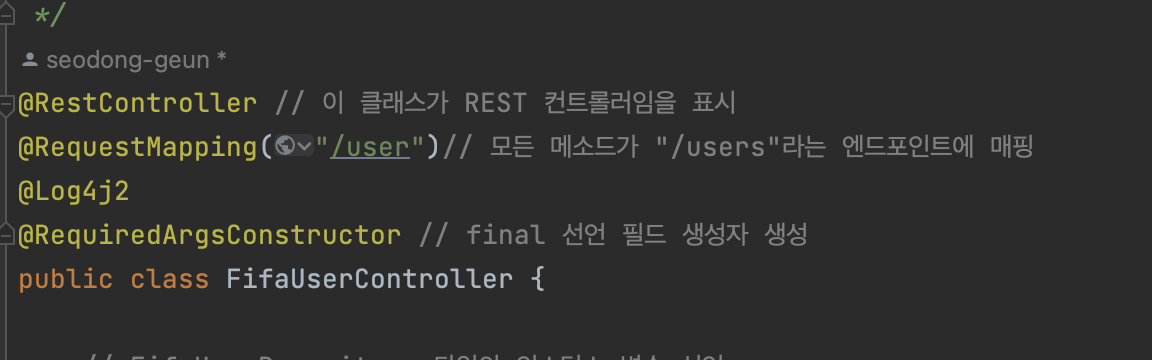 컨트롤러 코드 상단 '어노테이션을 확인해 보자.'(너무 간단해서 뻘쭘하다..)