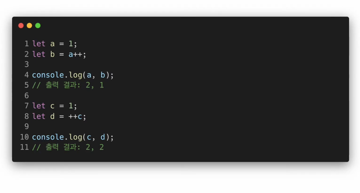 - prexfix 방식 : ++a (+ 후 a값 해석)