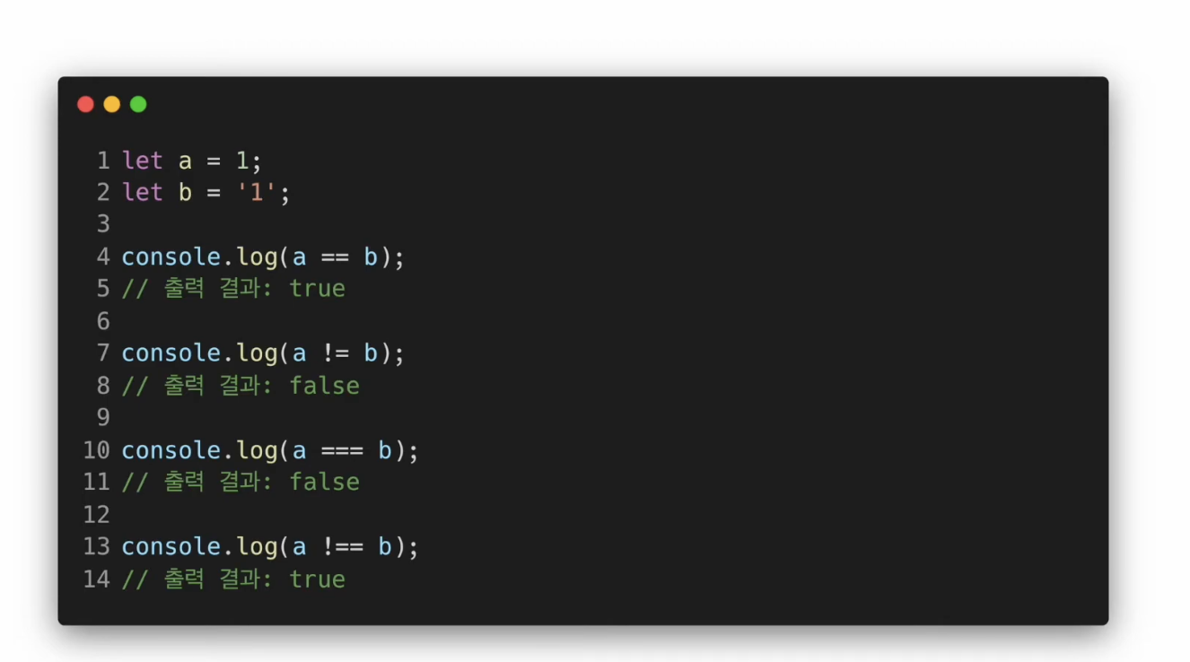 🧑🏻💻 동등 연산자, 일치 연산자 예제