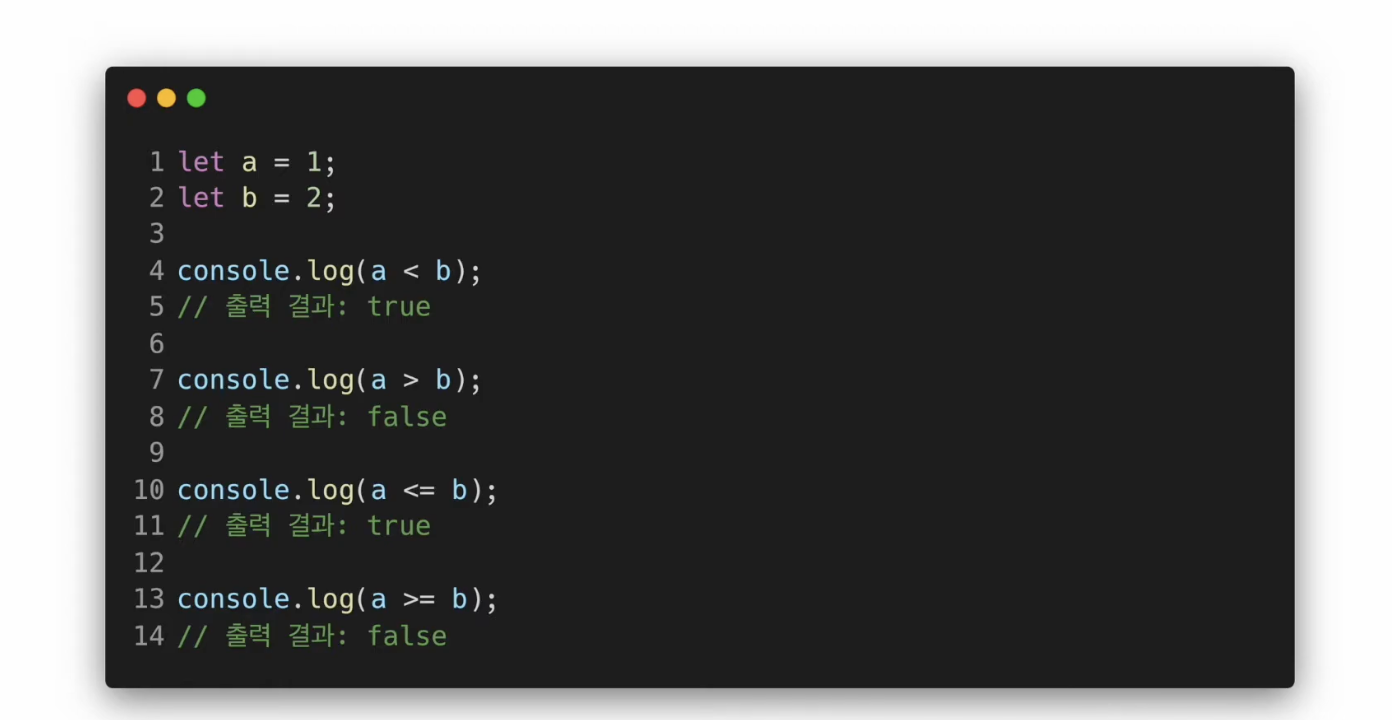 변수들 끼리 관계를 비교하기 위함이기 때문에 '비교 연산자'라고도 불린다.