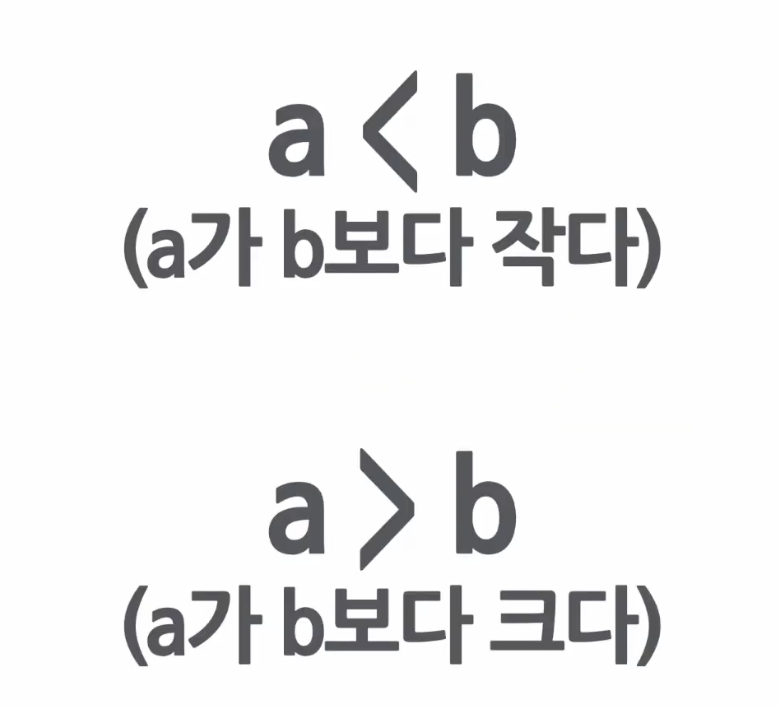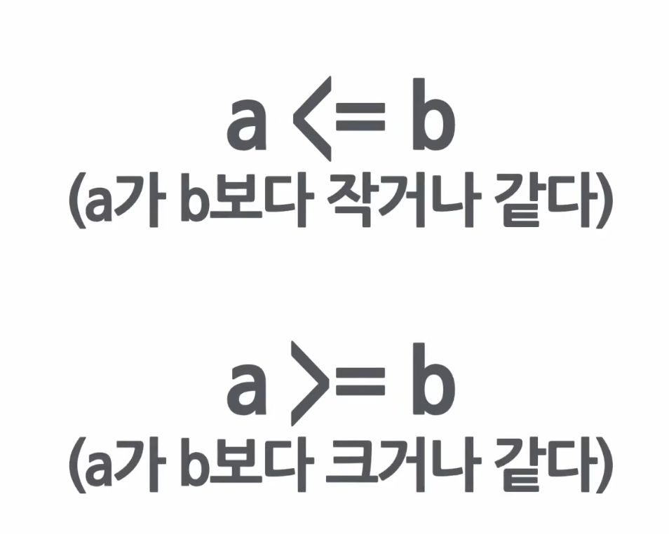 비교연산자는 항상 왼쪽을 기준으로 삼으면 된다. * 비교 연산자 : <, >, <=, >=