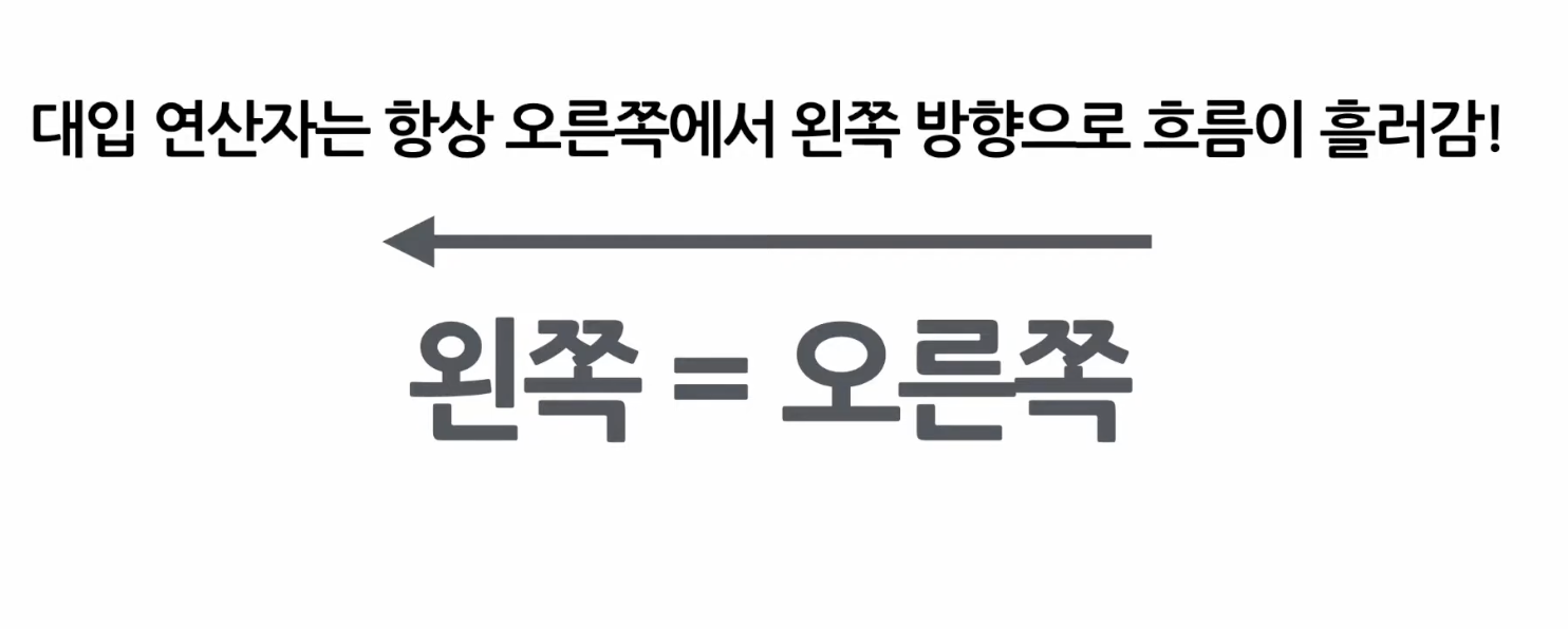 '='를 사용한다 *항상 오른쪽에서 왼쪽 방향으로 흘러간다.