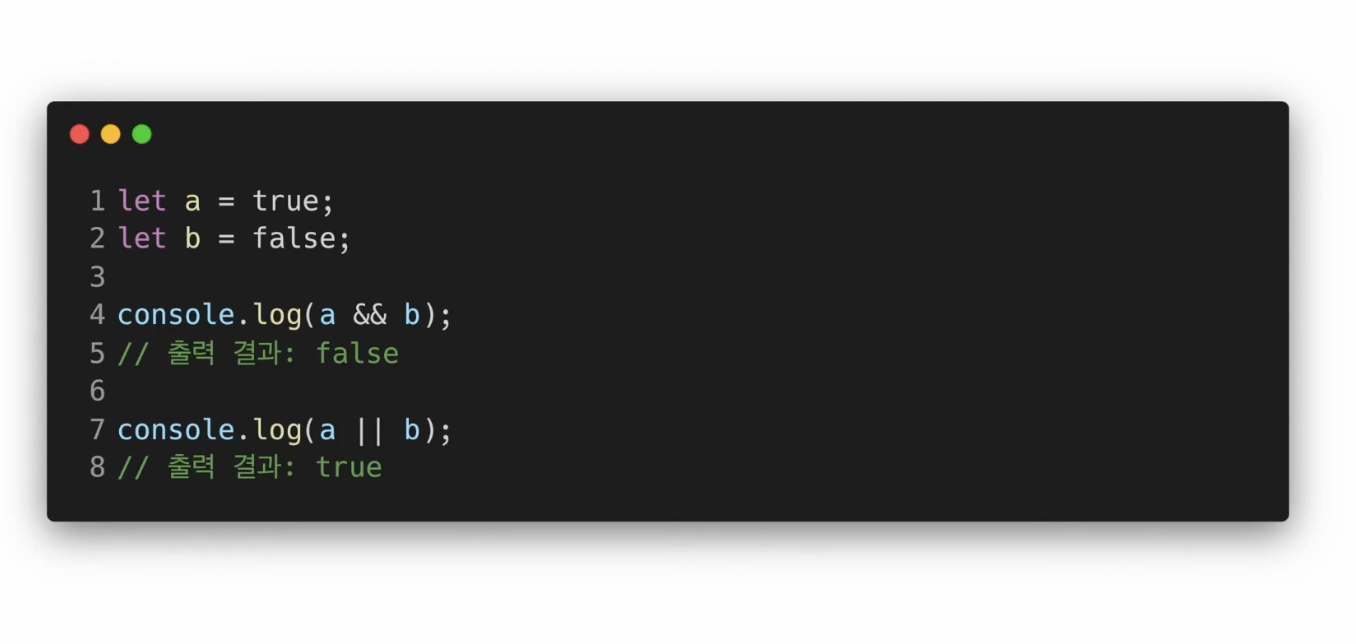 9. 이진 논리 연산자 : true와 false값을 비교, '||'와 '&&'를 사용