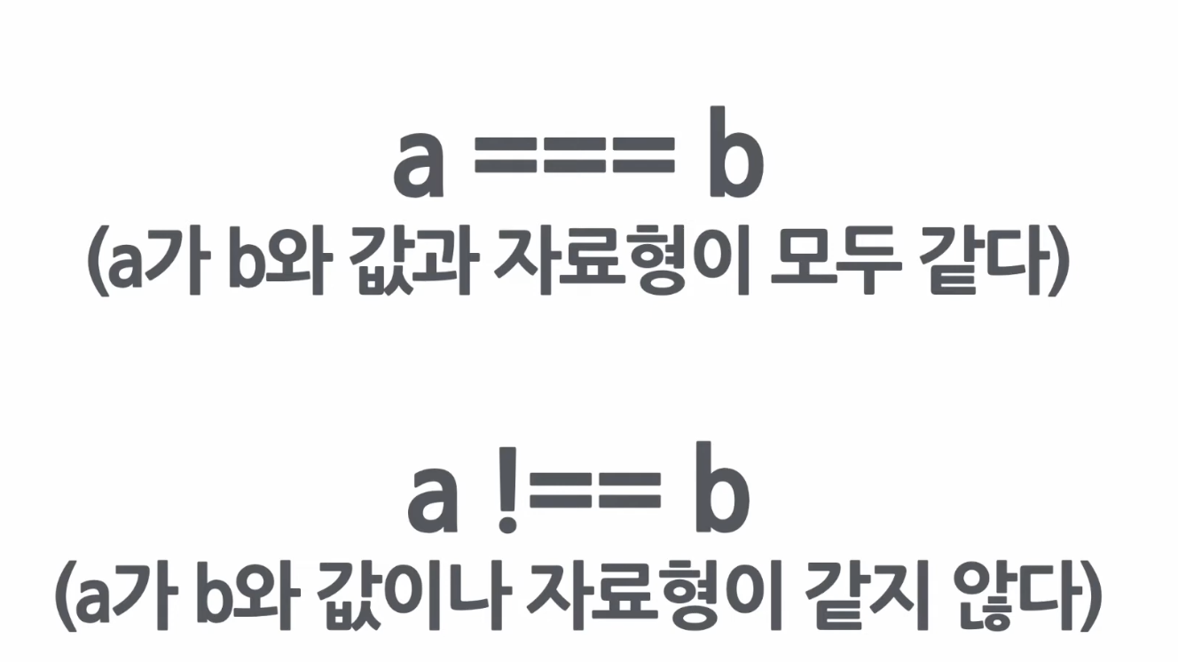 여기서 더욱 엄격하게 비교하기 위하여 '일치 연산자'도 사용한다.