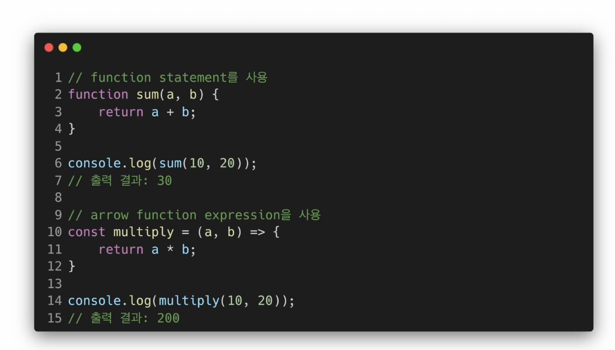 위의 코드는 애로우 펑션 익스프레션을 사용하여 함수를 정의한 예시이다.