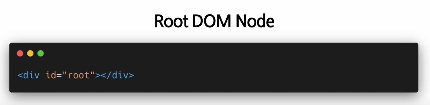 실제로 이 <div> 태그 안에 리액트 엘리먼트들이 렌더링 되고 이것을 Root DOM Node라고 부른다.