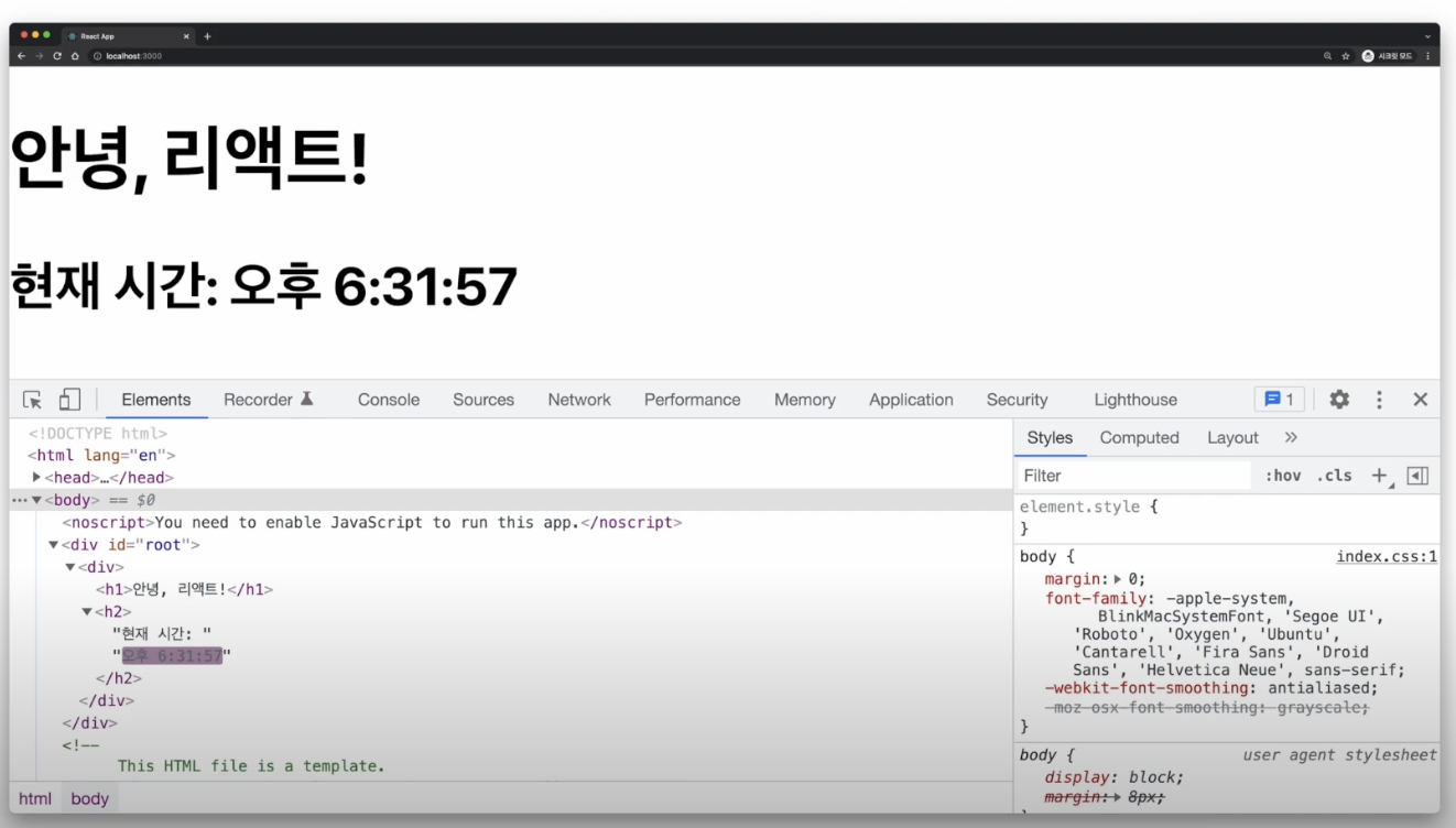 굉장히 단순하지만 이 코드는 모든 리액트에 필수적으로 들어가는 아주 중요한 코드이다.