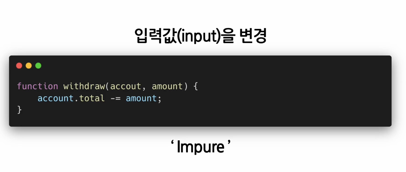 말 그대로 함수가 순수하다 는 뜻인데 이 말은 입력 값을 변경하지 않으면