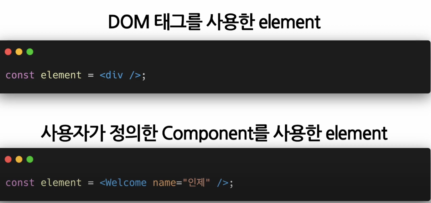 이 두 줄의 코드는 모두 엘리먼트를 만들어내게 된다