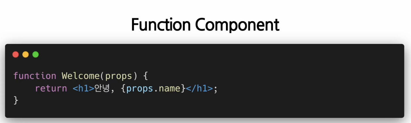 위 코드에 Welcome 이라는 함수는 하나의 props 객체를 받아