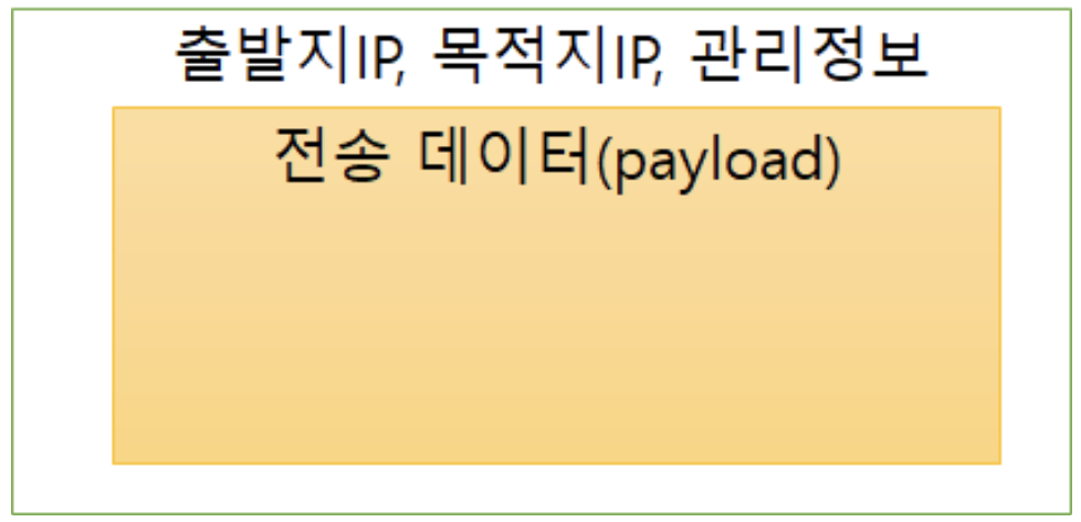 - 즉, 전송 데이터(보낼 메시지)와 함께 출발지 IP(클라이언트 IP), 목적지 IP(서버 IP) 등을 함께 묶어 패킷으로 만든 후 전달한다.