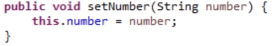 - setter() 는 멤버변수 값을 수정하는 기능으로 구성되며, 값을 수정만 하므로 반환 값과 반환 타입은 지정할 필요가 없고 수정할 값을 처리하는 매개변수를 선언해야 한다.