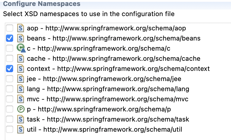 - root-context.xml 파일 선택 → 하단에 [Namespace] 탭 → ✅ context