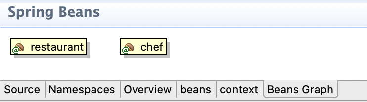 - 변경된 XML 저장 후 [Bean Graph] 탭 선택 후 객체가 설정된 것을 확인할 수 있다.