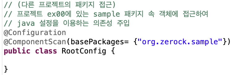 - jex00 프로젝트 → org.zerock.config > RootConfig 클래스 코드 작성