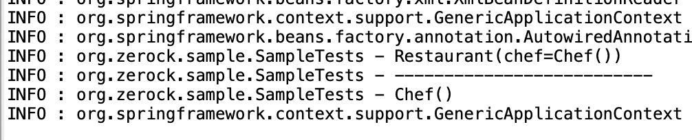 - SampleTest 클래스는 spring-test 모듈을 이용해서 간단하게 스프링을 가동시켜 위에서 설명한 동작들이 일어나게 한다.