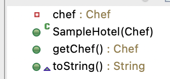 예를 들어 Chef라는 존재는 호텔에서도 필요하다고 가정하고 코드로 만들어 본다면 다음과 같이 구성이 가능하다.