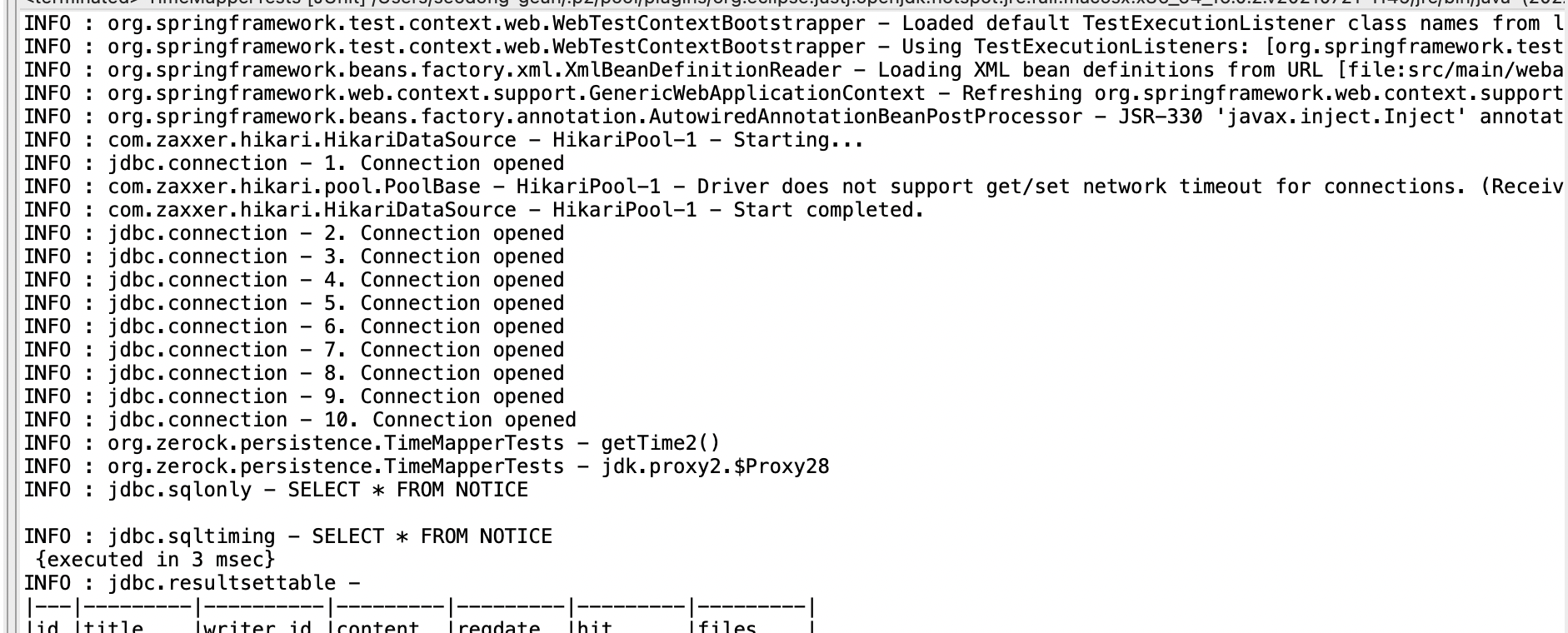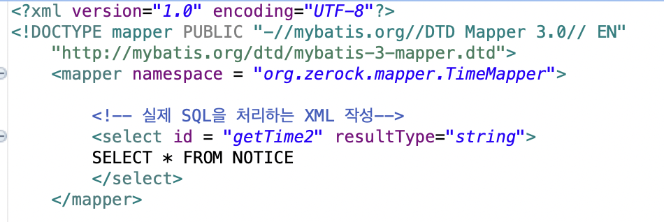 실제 SQL은 XML을 이용해서 처리하게끔 TimeMapper.xml 클래스 추가