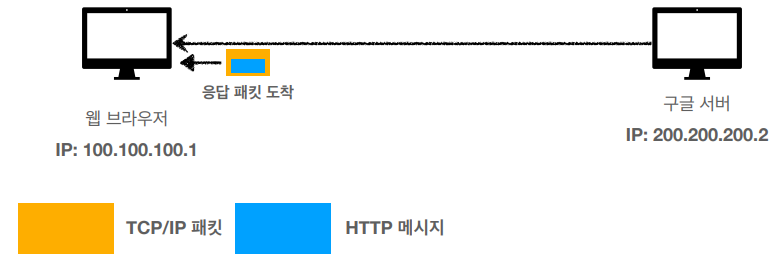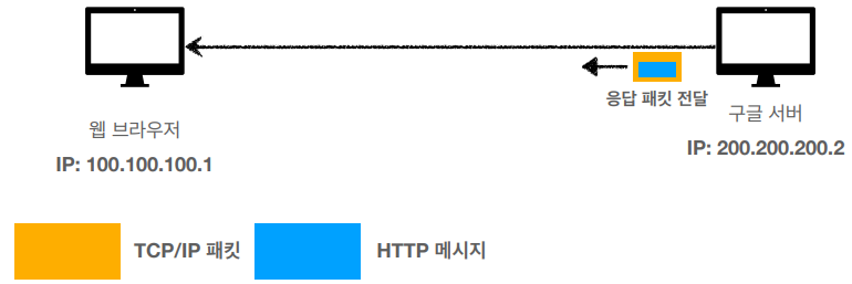 - 웹 서버에서 인터넷망(수많은 노드들)을 거쳐 웹 브라우저로 응답 패킷을 전달한다.
