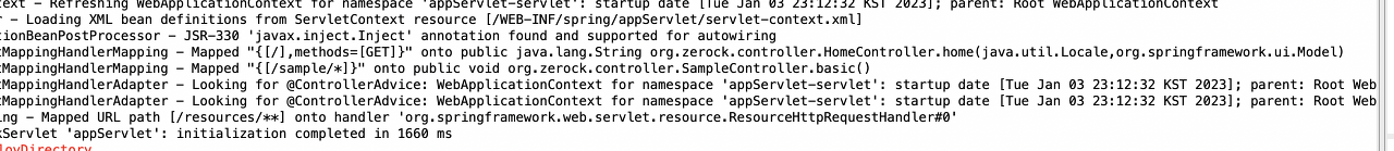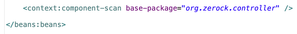그 이유는 servlet-context.xml의 보면 지정된 패키지 “org.zerock.conttoller”를 조사하도록 설정되어 있다.