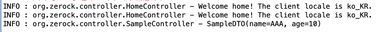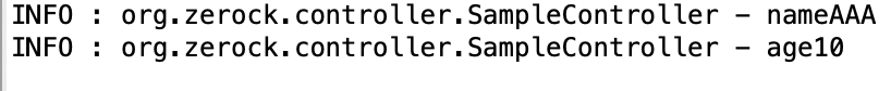 ’http://localhost:8080/sample/ex02?name=AAA&age=10’을 호출 시 아래와 같은 로그가 출력된다.
