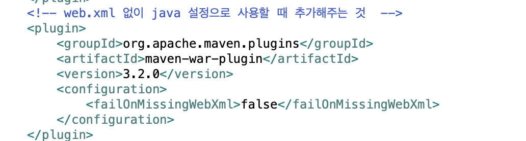 Java 설정 시 web.xml을 사용하지 않는 설정을 추가해 준다.