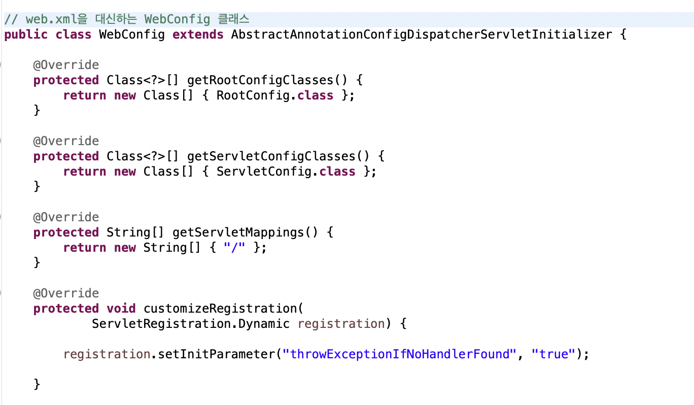 web.xml을 대신하는 WebConfig 클래스