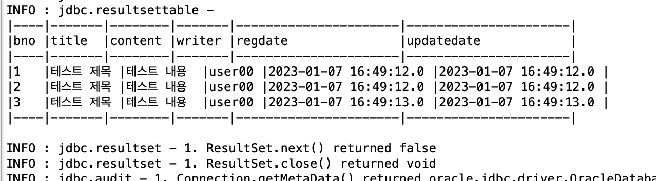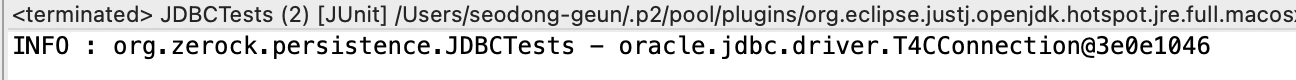 작업 후에는 JDBC 드라이버 설정, log4jdbc 설정등을 추가하고 테스트 코드를 통하여 정상구동을 확인한다.