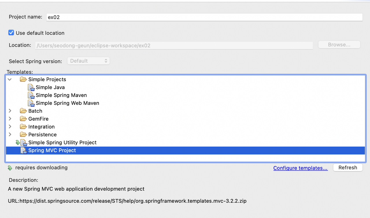 Spring LegacyProject로 ex02 프로젝트 생성한다.