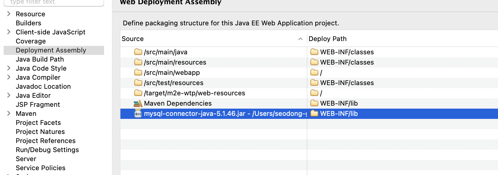 마지막으로 JDBC Driver를 Builpath와 Deployment Assembly에도 추가한다.