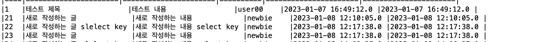 생성된 게시물의 번호를 확인할 수 있다.