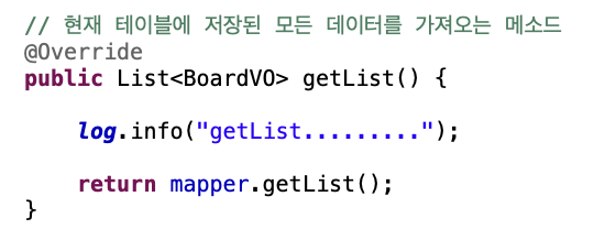현재 테이블에 저장된 모든 데이터를 가져오는 getList()는’ 아래처럼 구현한다.