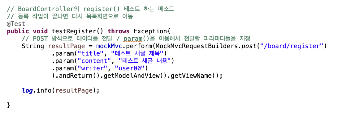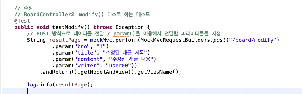 MockMvc를 이용해 파라미터를 전달할 때에는 문자열로만 처리해야 한다.