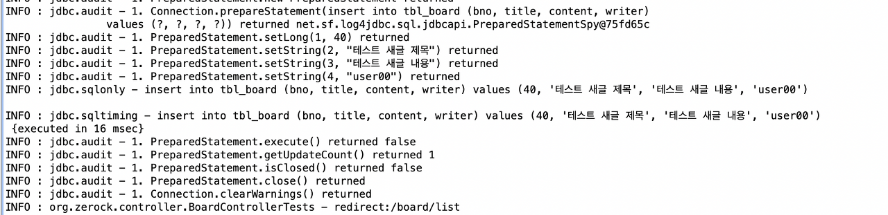 파라미터가 제대로 수집되었는지 확인하고 SQL 처리결과를 확인할 수 있다.