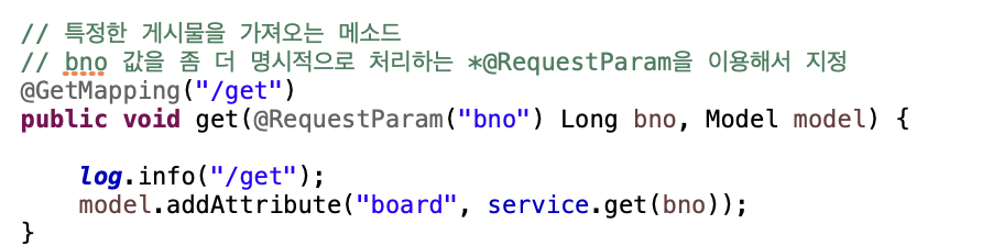 BoardController의 get() 메서드에는 bno 값을 좀 더 명시적으로 처리하는