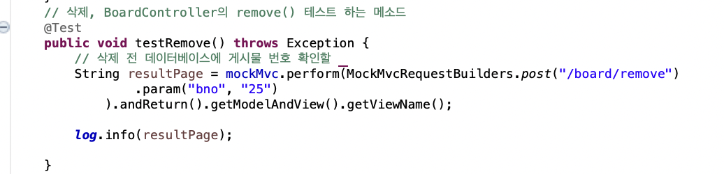 삭제 처리도 조회와 유사하게 BoardController와 테스트 코드를 작성한다.